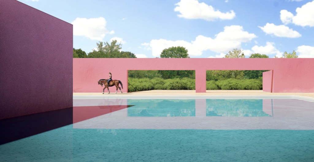 A masterpiece of domestic and equestrian architecture, Cuadra San Cristóbal combines residence, stables, and riding areas into a dreamlike composition. Its most famous feature is the pink walls that enclose a courtyard, punctuated by pools and fountains of flowing water. Horses drink from the same pools that reflect the architecture.