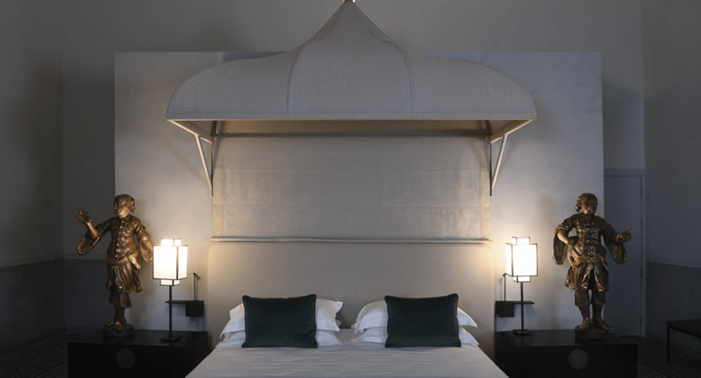 - Il Doge unfurls beneath a 7-metre fresco by Domenico Parodi, with a canopy bed echoing a Doge’s hat.