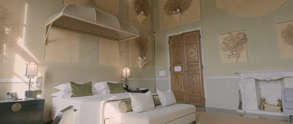 🎨 Highlights: Frescoed ceilings, curated antiques, spa, bar, breakfast salon