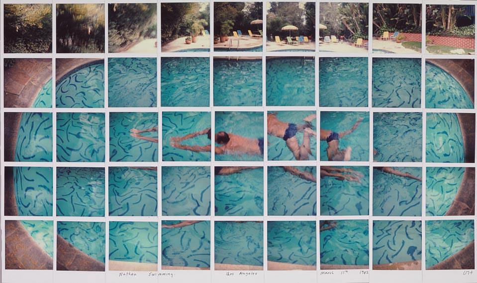 A cool, sunlit pool interrupted by an anonymous splash. Pop art meets California minimalism. - Portrait of an Artist (Pool with Two Figures) (1972, Private Collection)