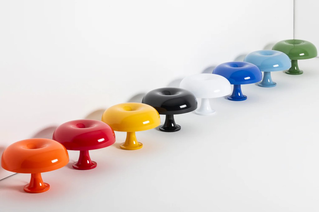 A burst of pop futurism, the Nesso is a mushroom-shaped lamp made of molded plastic in bright orange or white. When introduced in the late 1960s, it epitomized Italian optimism and experimentation with new materials. Today, it remains a fashionable favorite — playful, retro, and striking.