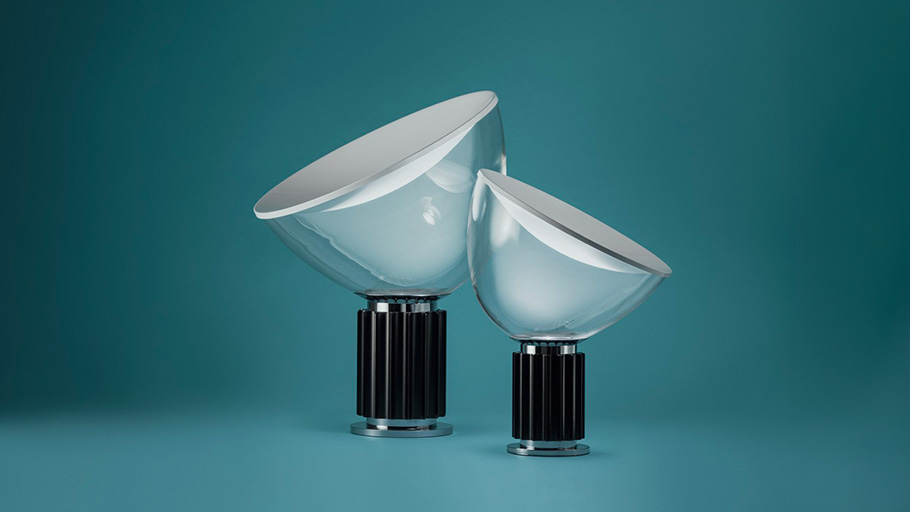 Nicknamed the “upside-down lamp,” the Taccia places a glass bowl on a ridged base, reflecting light upward to create a dramatic, ambient glow. It is both functional and sculptural — a classic of Italian design that feels as fresh in a contemporary setting as it did in the 1960s.