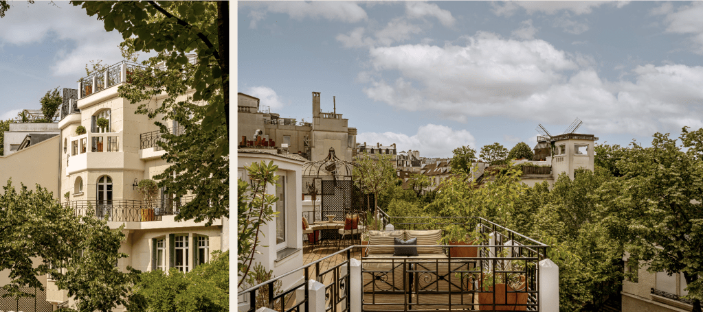Originally commissioned by the operetta composer André Mauprey, Villa Junot was conceived in the exuberance of the Roaring Twenties. Its exterior hinted at grandeur — wrought-iron balconies, intricate reliefs, elegant proportions — while inside it offered a stage for modern life in the city’s most artistic arrondissement. Nearly a century later, it has been restored and reinterpreted, its bones preserved but its spirit revitalized.