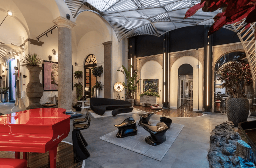 Zaha Hadid once said she was interested in “fluidity — of movement, of space, of thought.” Romeo Roma makes that philosophy tangible. It is a place where frescoed walls and futuristic curves converse, where history is not static but alive, refracted through design.