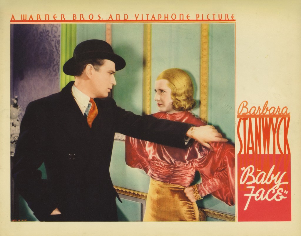 - Baby Face (1933, dir. Alfred E. Green) – Barbara Stanwyck’s Lena ascends from speakeasy waitress to Wall Street executive, weaponizing men’s desire.