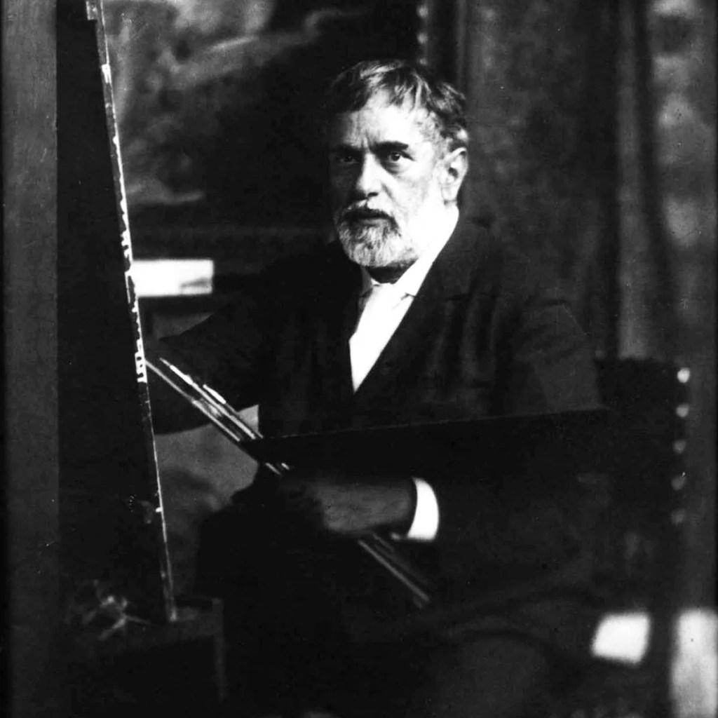 Born in Granada and raised across Europe, Mariano Fortuny settled in Venice in 1889, taking residence in the Palazzo Pesaro degli Orfei — now the Palazzo Fortuny museum. Painter, photographer, inventor, and stage designer, Fortuny embodied the fin-de-siècle spirit of artistic experimentation.