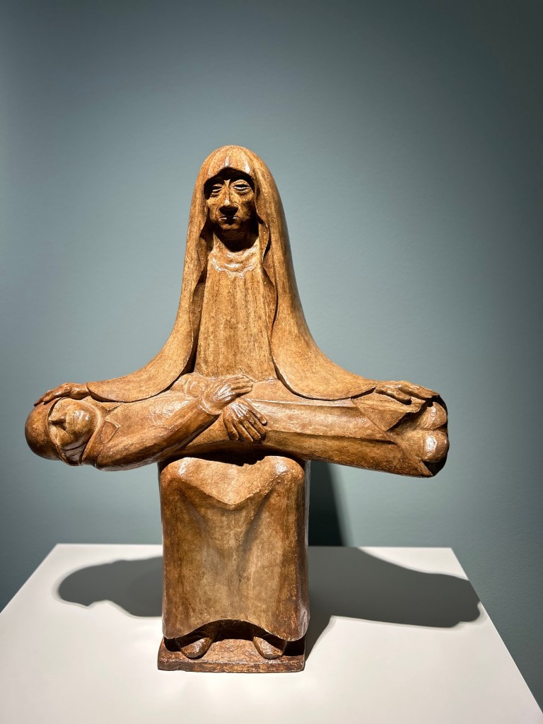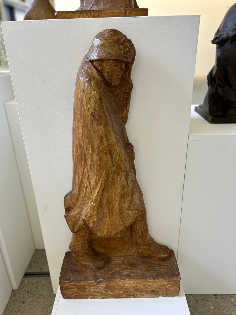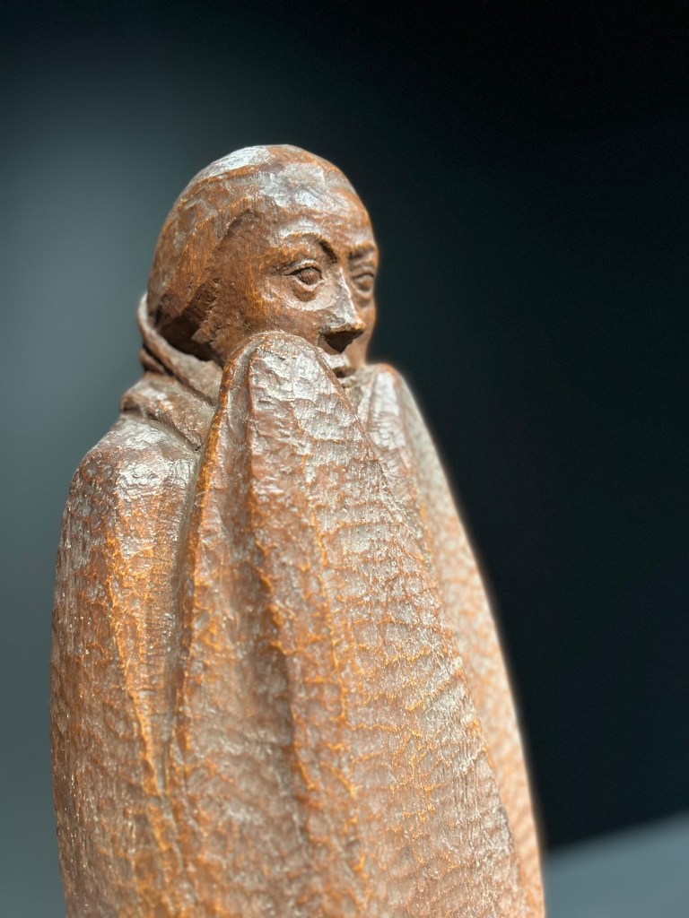 What strikes you is the physicality of his sculpture. Barlach carved not idealised bodies but souls — peasants, wanderers, prophets, grief-stricken mothers — with monumental simplicity. Even in small scale, the works feel carved out of something much heavier than the material itself, as though they were pulled from the earth rather than shaped by hands.