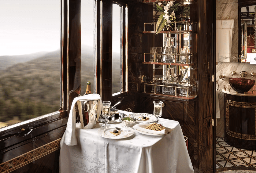 What remains: the polished woods, Lalique panels, intimate dining cars, and the ceremonial rhythm of slow travel. The sense of stepping back into a grander age is intact.