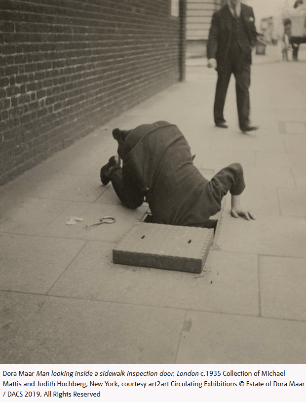 Her surrealist photographs from the 1930s reveal a mind fascinated by the uncanny: photomontages that juxtapose nudes with architectural fragments, dreamscapes that dissolve the line between the real and the hallucinatory. Her street photography, particularly from London and Barcelona, captured the stark realities of Depression-era poverty. Later, after her break with Picasso, she turned to painting, producing lyrical abstractions marked by solitude and introspection.