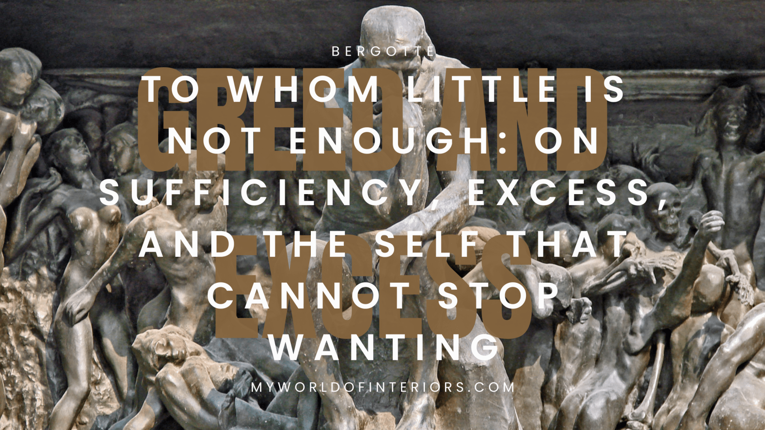 The Greeks had a precise diagnosis for the condition that defines our age. They called it pleonexia — the desire for more, the wanting that has no natural limit, the reaching that cannot stop because it does not know what it is reaching for. They considered it not merely a practical error but a moral failure and a spiritual one: the condition of the person who has confused the instrument with the end, the means with the good, and — most fundamentally — the accumulated thing with the self that is doing the accumulating. Two and a half thousand years later, the diagnosis has not been improved upon. The condition has simply gotten worse.