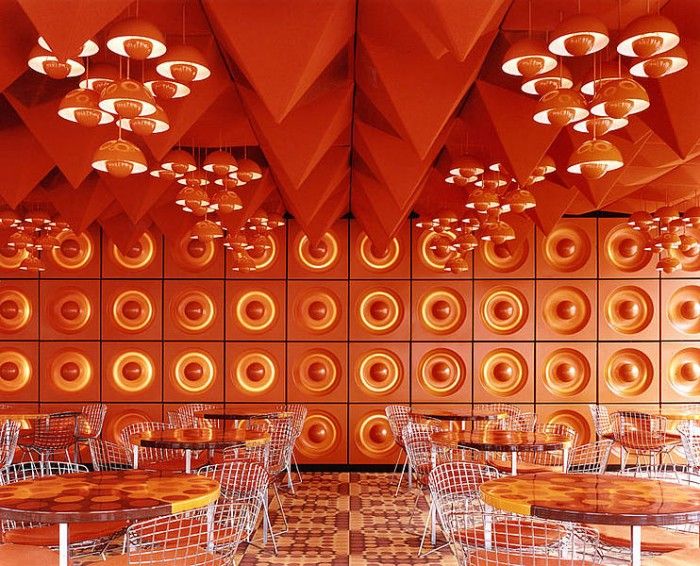 - The Spiegel Publishing House canteen (1969, Hamburg) featured futuristic lighting, modular seating, and flowing forms that turned a workplace cafeteria into an almost cinematic set.