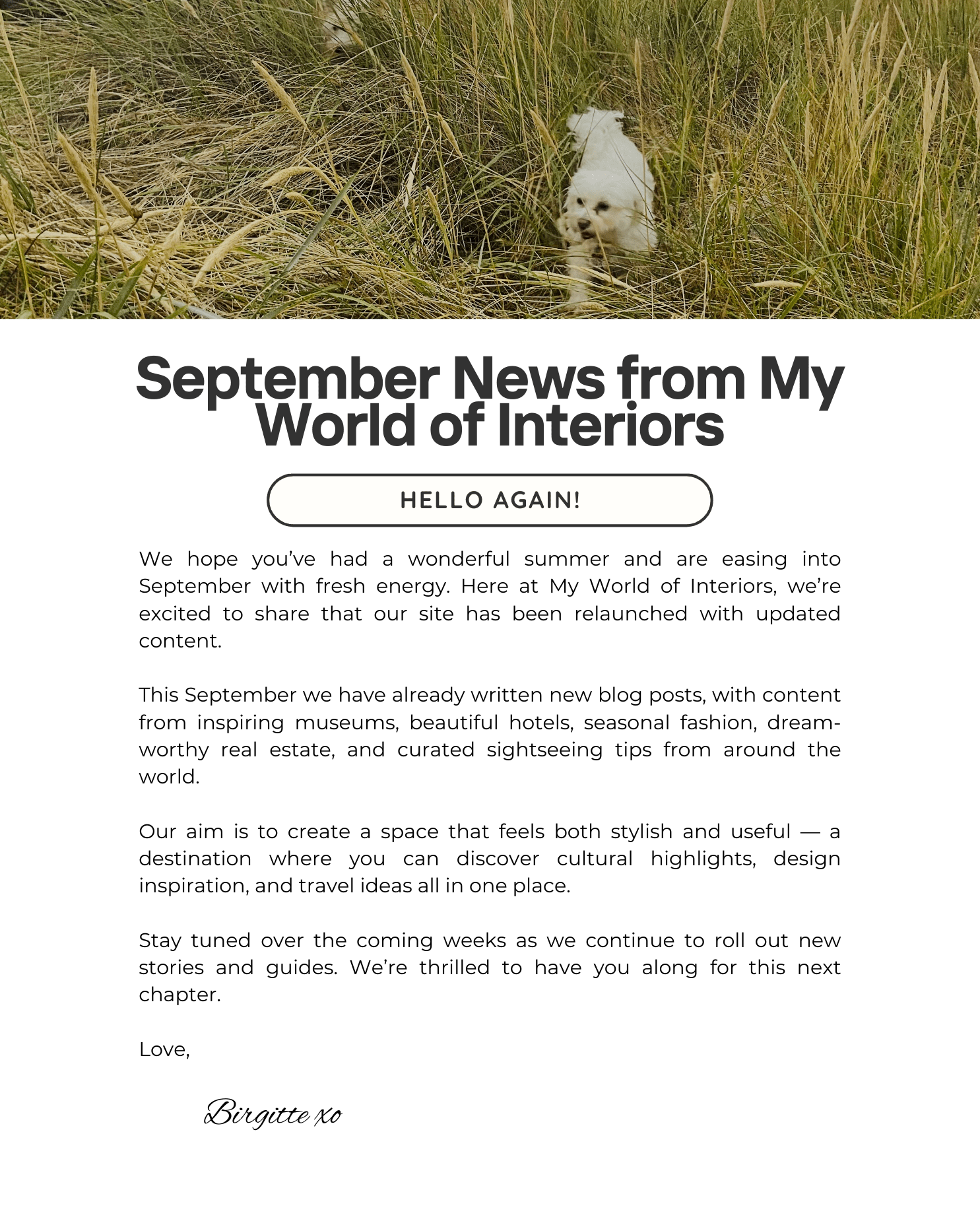Mid-September Newsletter: A Month of Design, Travel & Culture
